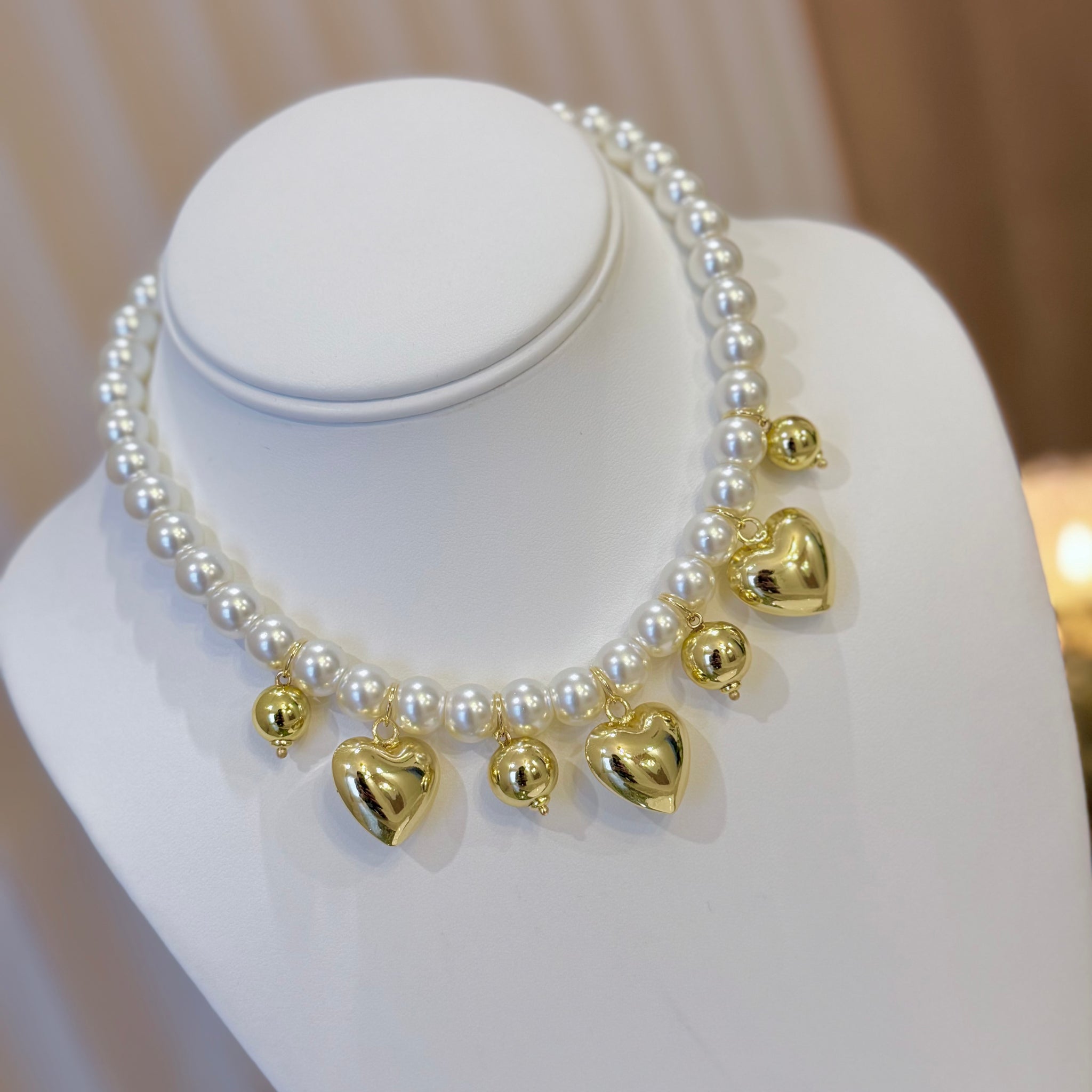 The Necklace Love and Pearl is a delicate and elegant piece that celebrates love and femininity through a timeless design. Its gold heart charm symbolizes self-love and emotional connection, while the pearl spheres add softness, harmony, and a natural glow that enhances any look with subtle elegance.