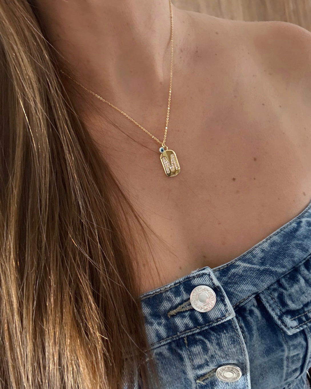 Adjustable Chain with Rectangular Plate & Zircon Initial with Lucky Eye